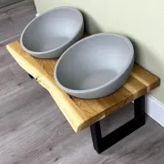 Diese Futterstation hat eine Länge von 56cm. Wir bieten diese Futterstation auch in einer längeren Variante an: Eiche Design Futterstation für große Hunde mit Baumkante | 70cm